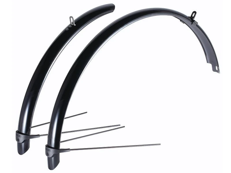 Skærmsæt fra BBB i slidstærke plastmateriale og med en praktisk sort farve, der passer til langt de fleste stelfarver. Skærmsættet er kompatibelt med børnecykler med 20″ hjul, og der medfølger afstivere i rustfrit stål til sættet for god stabilitet.