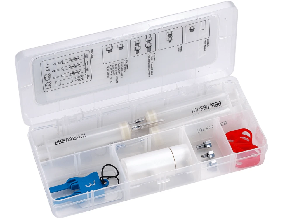 Indeholder alt hvad der skal bruges til hydrauliske bremser. Dette er det perfekte sæt til dig, som ønsker at udlufte dine hydrauliske bremser derhjemme