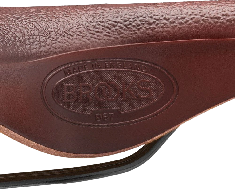 Brooks B67 S er en damesadel i en god kvalitet og med en flot mørk brun farve, der giver et klassisk look. Cykelsadlen er lavet i England efter de gamle traditioner samt er skabt i et lækkert lædermateriale. De to brede fjedre under damesadlen sørger for sublim komfort under kørsel, og modellen passer særligt godt til damecykler med en helt oprejst siddestilling.