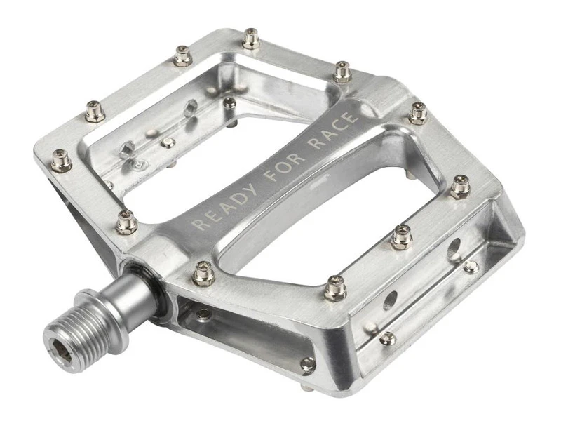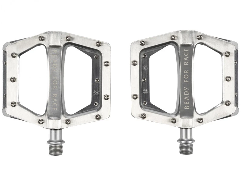 Cube RFR Flat Pedals Anti-Slip Race Grey / Alu er et sæt mountainbike-pedaler i fremragende kvalitet. De lette pedaler er fremstillet af aluminium og kan let afmonteres hvis det ønskes. Der medfølger fire gule reflekser til montering på pedalerne, så cyklen er lettere at spotte på de mørke veje samt lever op til den gældende lovgivning om udstyr på cykler. De lette pedaler vejer 437 gram.