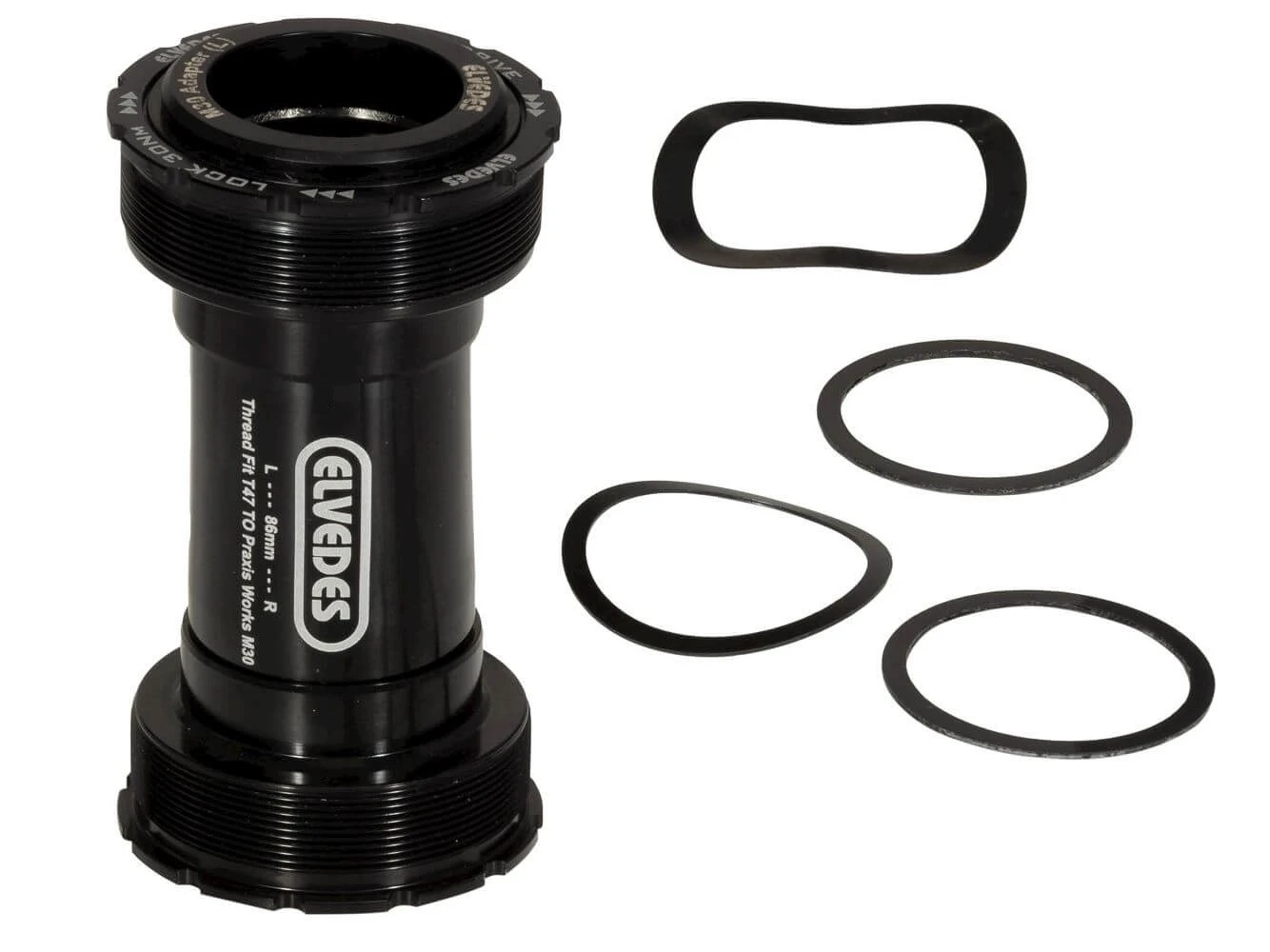 Denne krankboks er til brug med T47gevind og som skal laves om til at kører med 86mm Praxis M30 krankboks. Krankboksen er udelukkede til Praxis Works M30 kranksæt, som kører med aksel på hhv. 30 og 28mm i diameter.