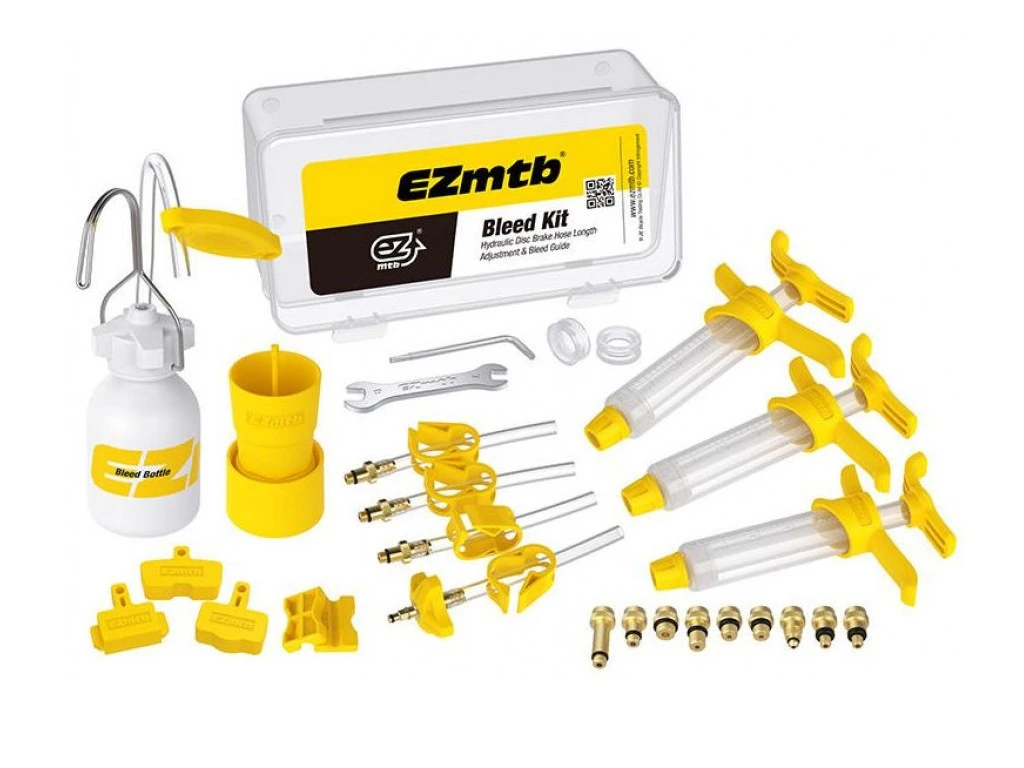 Indeholder alt hvad der skal bruges til hydrauliske bremser. Dette er det perfekte sæt til dig, som ønsker at udlufte dine hydrauliske bremser derhjemme. Du får her alverdens adaptere, tragte osv.