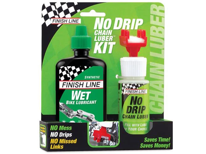Synes du, det er ret besværligt og spild af olie at smøre cykelkæden ordentligt, er dette sæt fra Finish Line det perfekte valg for dig. No Drip Chain Luber er den nemme vej til at holde kæden velsmurt og godt beskyttet, så du igen kan nyde turene på en velholdt cykel.