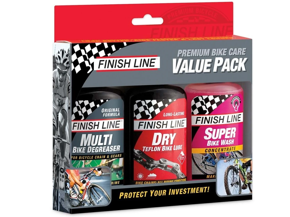 Denne pakke indeholder alt du skal bruge for, at pleje og vedligeholde din cykel efter alle foreskrifterne. Flaskerne indeholder hver 120ml og er derfor også ideele til rejsetasken eller lignede. Finish Line producere plejeprodukter i topklasse og dette er ingen undtagelse.