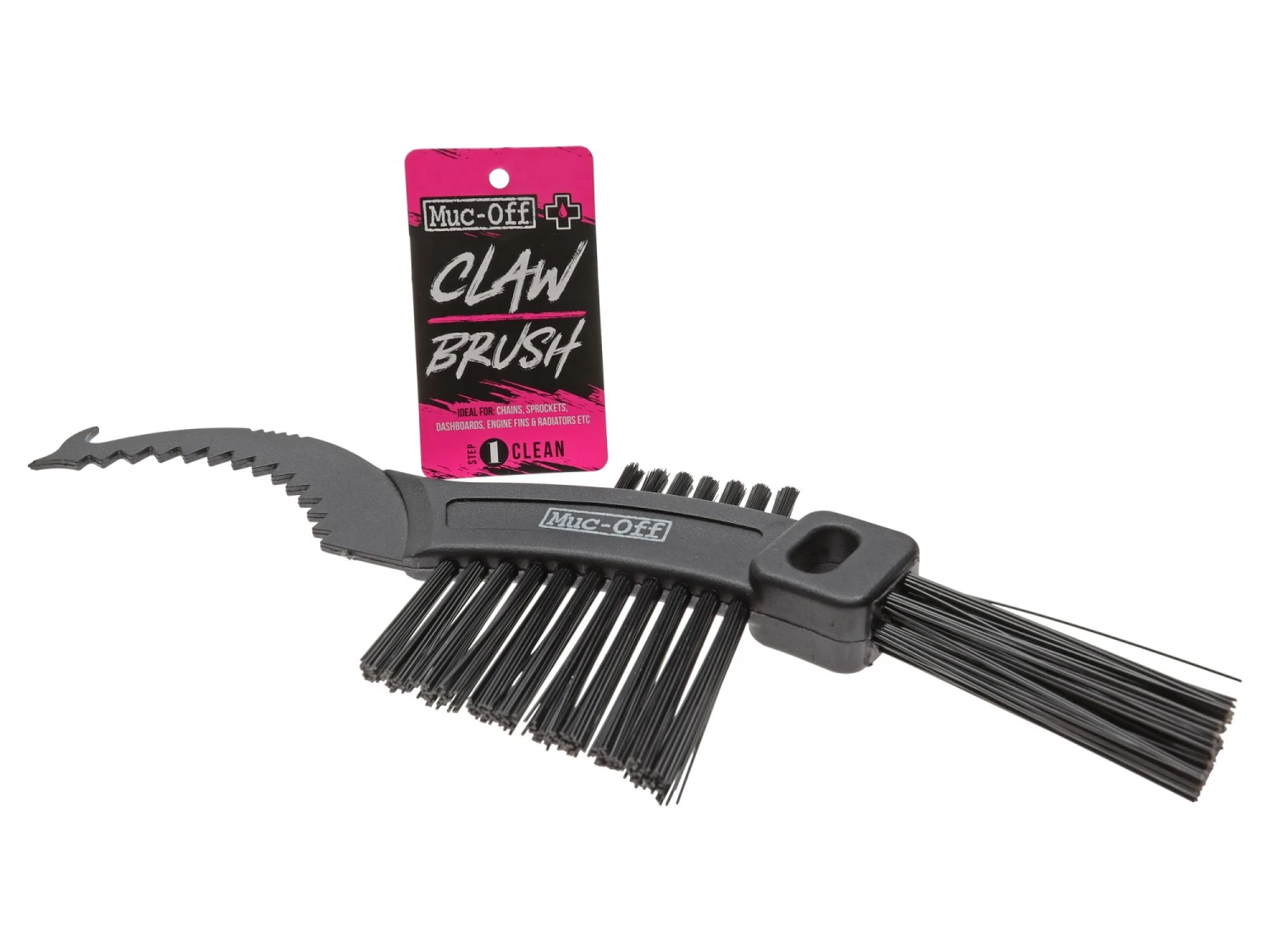 Muc-Off Claw Brush er en multifunktionel børste til effektiv rengøring af cyklen. De 3 børstehoveder er alle skabt med hårde nylonhår, og sammen med den smarte skraber i enden gør børsterne det nemt at rengøre eksempelvis kæden, kassetten samt tandhjul, der ellers kan være svære at komme til.