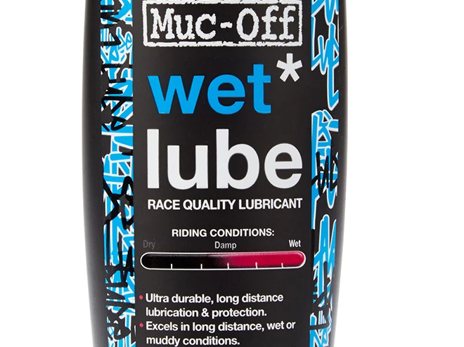 Afviser vand og snavs under selve køreturen. Muc-Off wet lube produktet kan bruges mange steder på cyklen. Kæde, skiftere, kabler, bagskifter, pedaler og klamper.
