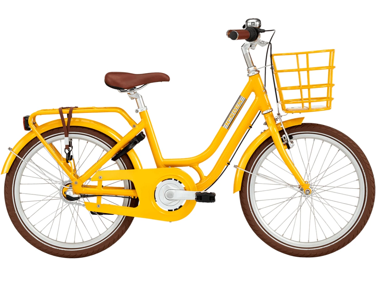 Clara 20″ er moderne nostalgi til stilbevidste piger. Det feminine design går hånd i hånd med robuste materialer og moderne teknik, som gør cyklen meget let at træde. Veludstyret er den også: Smart og praktisk cykelkurv, solid bagagebærer med strop, 3 indvendige Shimano-gear, ægte læderhåndtag og en retro-klokke, der virkelig kan høres. Shimano V-bremsen og fodbremsen sørger for, at du standser sikkert igen.