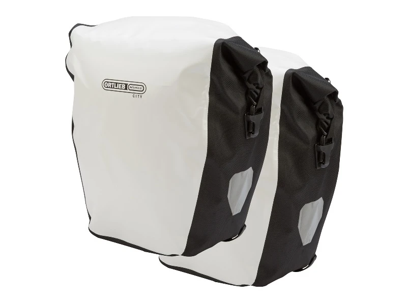 Dette er nogle af de mest solgte cykeltasker fra Ortlieb og med god grund. Der er særdeles simple og anvendelige og kommer i 100% støv og vandtæt materiale. Du kan med andre ord trygt fragte dit tøj, computer eller lignende i disse tasker uden at skulle bekymre dig om de bliver våde. Derudover har de et par effektive 3M reflekser, som gør du lettere bliver set når du drøner derudaf.