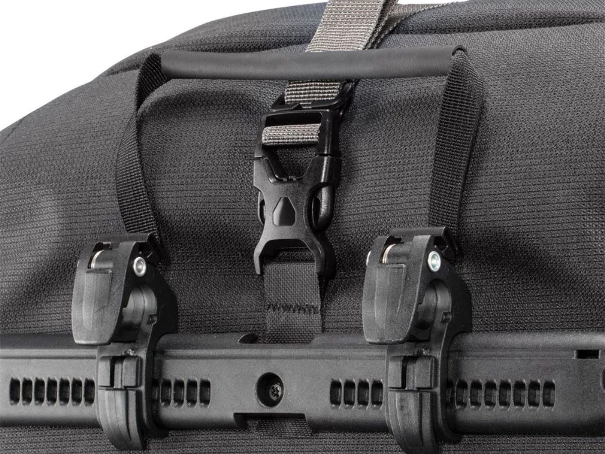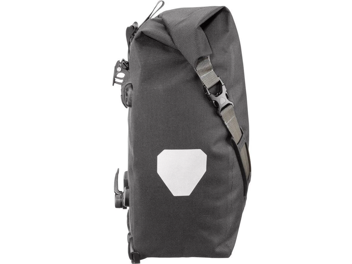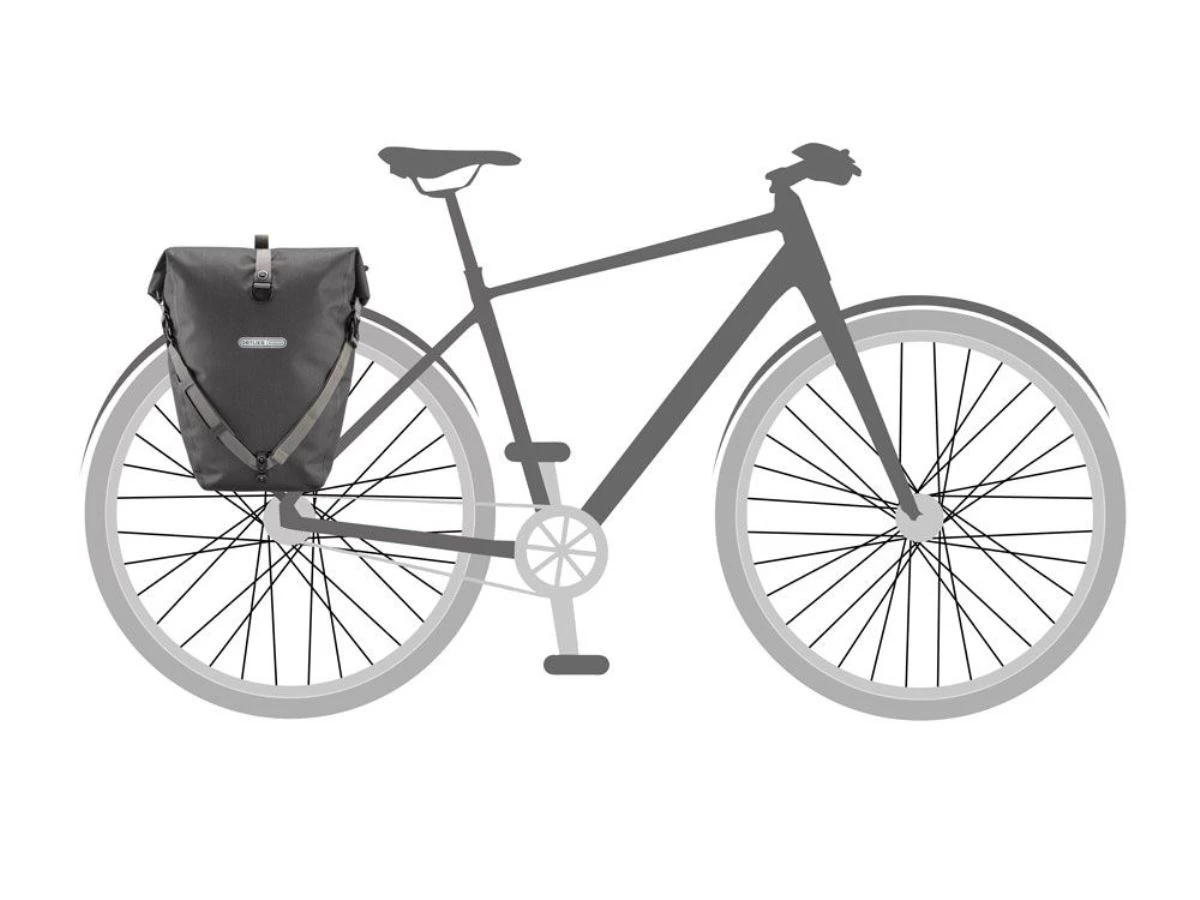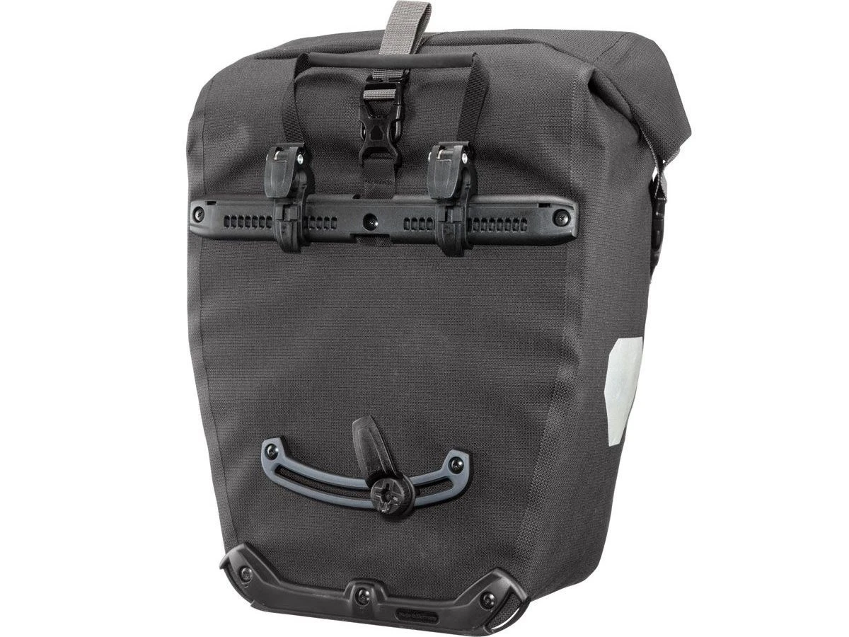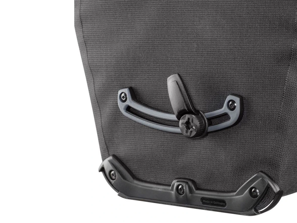 Tasken kommer med Ortliebs QL2.1 beslag, som gør det nemt at på- og afmontere tasken fra cyklen. Tasken sidder rigtig stabilt og der ydes hele 5 års garanti på den.