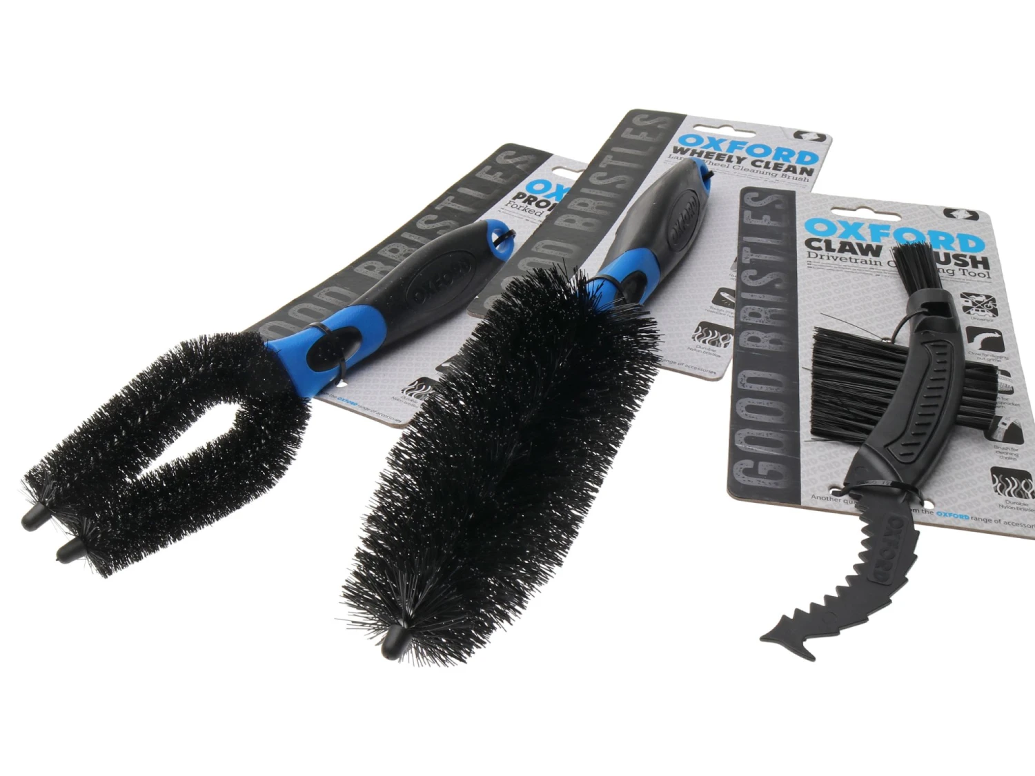 Et godt alsidigt børstesæt fra Oxford, der har tre gode børster til at holde hjemmets køretøjer rene. Sættet indeholder en børste specifikt til at rense hjul, som er kegleformet og derved nemt når ind alle steder, men samtidig har en stor nok overflade til at gøre godt rent. En børste til forgaflen så du nemt og hurtigt kommer hele vejen rundt, så du får vasket jord og sand af. Slutteligt en børste specifikt til rengøring af kæde, kassette samt tandhjul, et absolut must til alle hjemmets cykler.