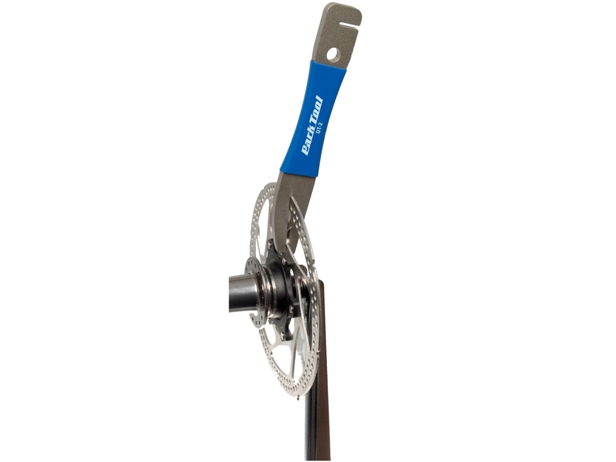 Med dette praktiske stykke værktøj kan du nemt rette dine bremseskiver, hvis de har fået et lille slag ved styrt,. slag eller lignende. Værktøjet er lavet med to dybder; alt efter om det er yderste skiven har fået et slag eller det er hele skiven.