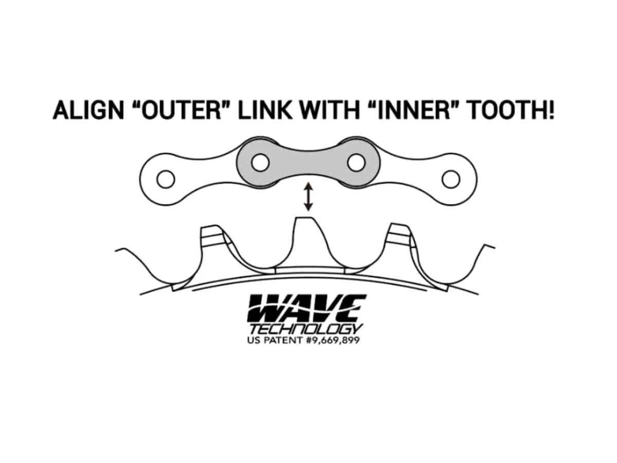 Denne klinge kan bruges til Praxis Works, men også til både Shimano og Sram. Den kommer med 4 bolthuller og et BCD-mål på 104mm. Den kommer med Praxis Works’ særlige wave-teknologi, som minder om Narrow Wide, men som er mere avanceret end det; se billederne.