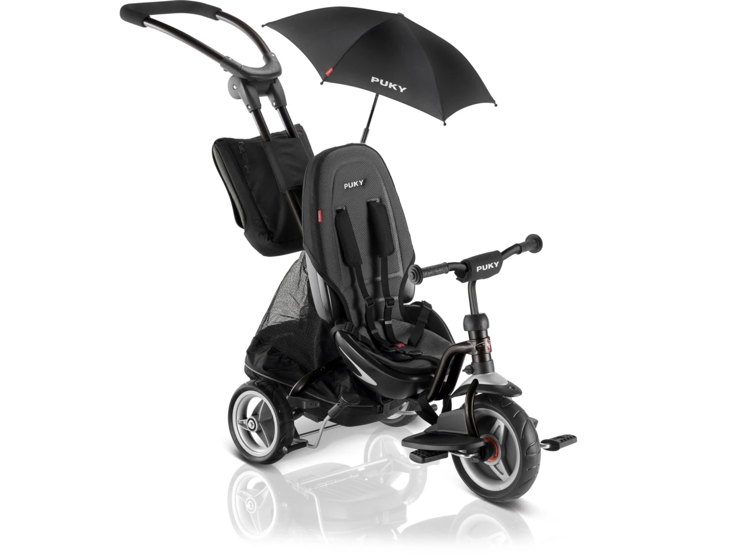 Med en Puky Ceety Cat S6 er dit barn sikret en masse sjov på jeres ture. Barnet kan fastspændes i cyklen og selv træde pedalerne; bliver benene trætte kan mor eller far blot skubbe cyklen med den medfølgende skubbestang. Hvis solen forhåbentlig skinner, kan der monteres den medfølgende paraply på skubbestangen; som ligeledes også holder solens stråler af vejen.