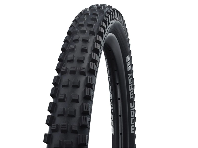 Cykeldækket Magic Mary Addix fra Schwalbe er i størrelse 26×2.35 og er fremstillet af materialer i god kvalitet. Den unikke Addix compound giver dækket fra Schwalbe en lav rullemodstand, så man nemt kan få god fart på cyklen, og det kraftige dækmønster sørger for at cyklen står godt fast på både asfalt og de grusede skovstier. Schwalbe Magic Mary er skabt med en hård midte og bløde sider for optimal manøvredygtighed selv i ujævnt terræn og har en vægt på 1.400 gram.