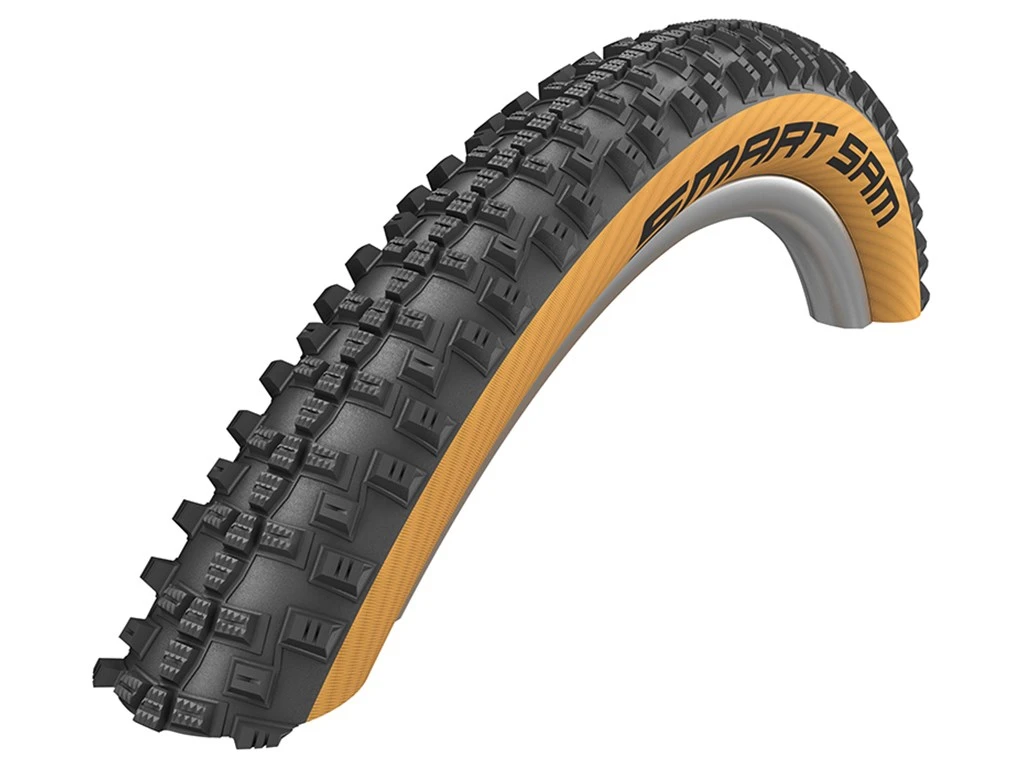 Schwalbe Smart Sam 29×2.25 er et MTB-dæk med god holdbarhed og en høj kvalitet. Dækmønsteret giver et godt vejgreb i det ujævne terræn, samtidig med at cyklen er nem at manøvrere. Schwalbe-dækket er skabt af en særlig ADDIX Compound-gummibelægning for god slidstyrke og minimal friktion, så der kommer masser af fart i dækket. Schwalbe Smart Sam kommer med en maksimal bæreevne på 120 kg samt har en vægt på 790 gram. I Classic Skin versionen har dækket brune dæksider.