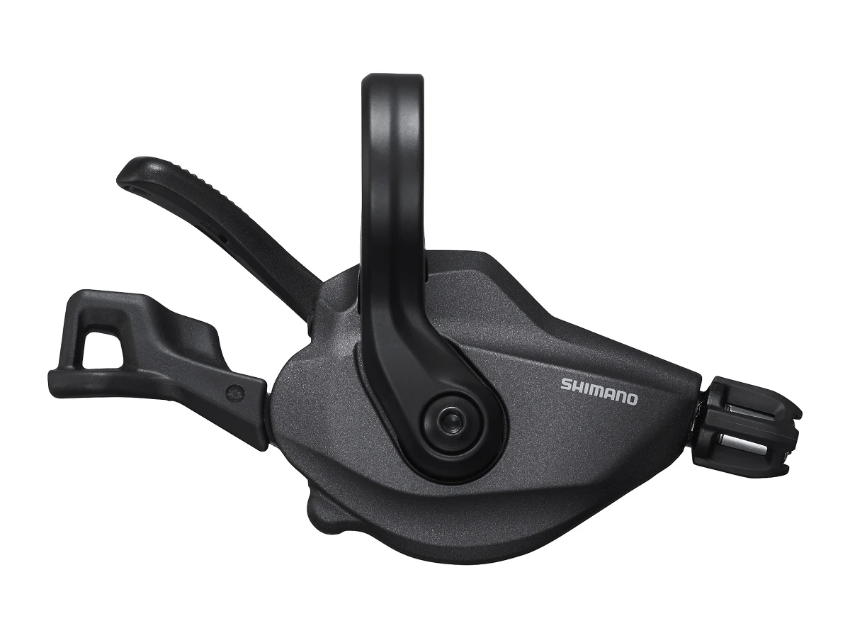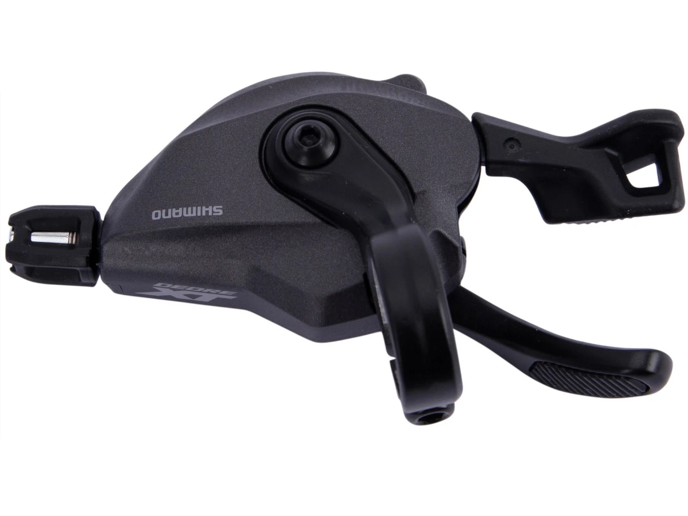 Dette Shimano Deore XT skiftegreb er beregnet til 12 gear bagpå og er med såkaldt Rapid Fire Plus samt 2-vejs release. Det kan skifte 3 gear ad gangen, så du lynhurtigt kan få skiftet op og ned. Det er beregnet til at montere med spændebåndet, så det passer på alle styr uanset hvilket bremsegreb du har på cyklen.