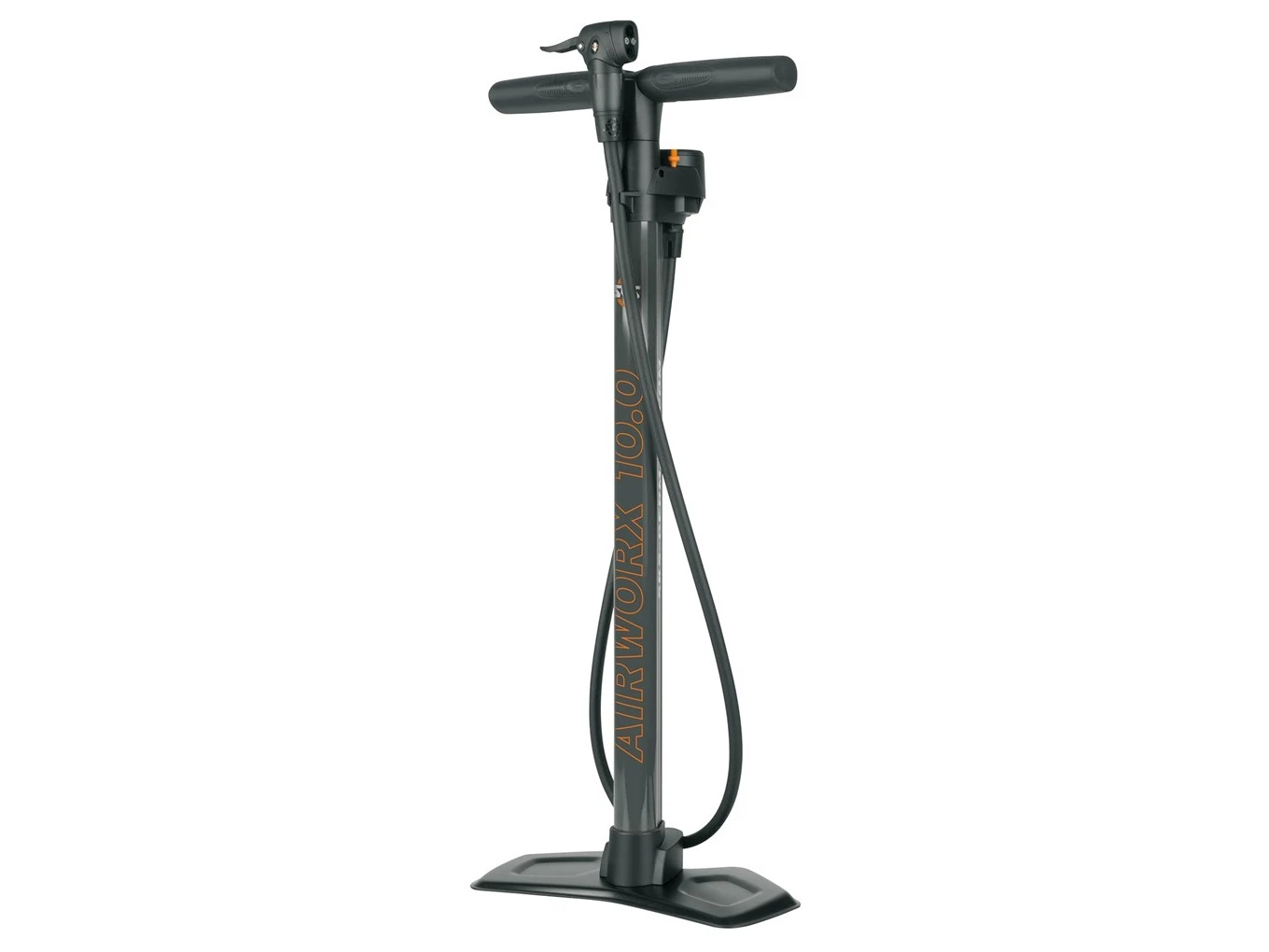 SKS Airworx 10.0 er en solid fodpumpe, hvor kvaliteten er helt i top. Cykelpumpen er skabt med et pumperør i holdbart stålmateriale, og den brede fodbase sikrer god stabilitet. Det topmonterede præcisionsmanometer sørger for, at det er nemt at holde øje med trykket både i bar og PSI, og Airworx 10.0 cykelpumpen kan pumpe op til 10bar/144 PSI. Det smarte Multivalve pumpehoved gør pumpen multifunktionel, da den kan anvendes til alle slags ventiler på cykeldæk, og der medfølger desuden 2 praktiske adaptere til bolde samt luftmadrasser.