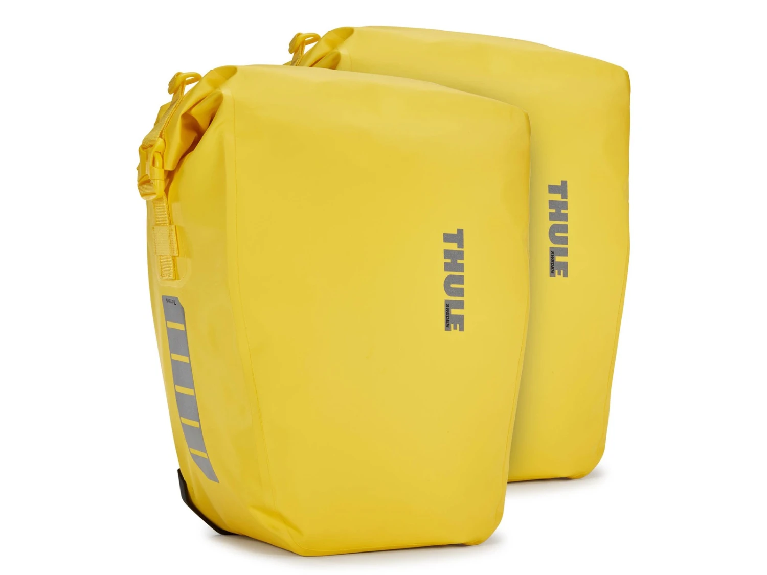 Rigtig lækkert taskesæt til cyklen i velkendt Thule kvalitet. De er særdeles simple og anvendelige og kommer i 100% støv- vandtæt materiale. Du kan med andre ord trygt fragte dit tøj, computer eller lignende i disse tasker uden at skulle bekymre dig om de bliver våde. Derudover har de et par iøjnefaldende reflekser, som gør du lettere bliver set når du drøner derudaf.