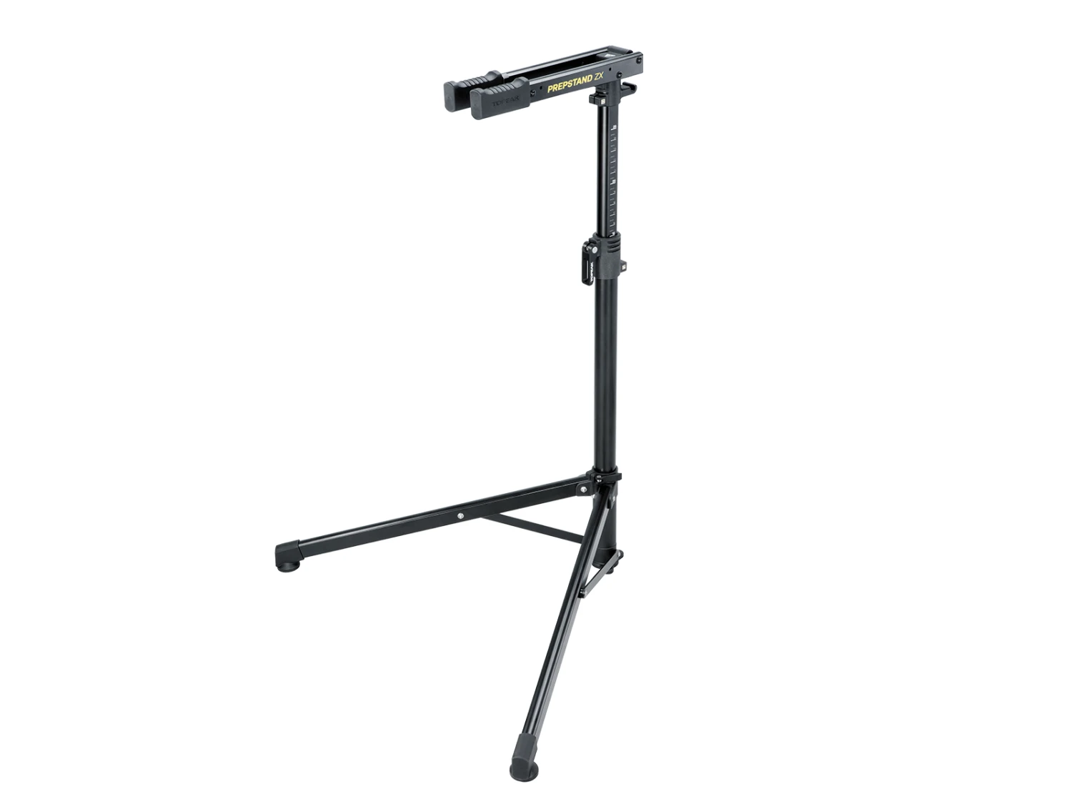 Cykelholderen foldes ud, samles og indstilles til den korrekte højde. Husk at spænde godt til, så stativet står stabilt under hele reparationen. Fastgør herefter cyklen forsvarligt, og indstil armen til den ønskede vinkel.