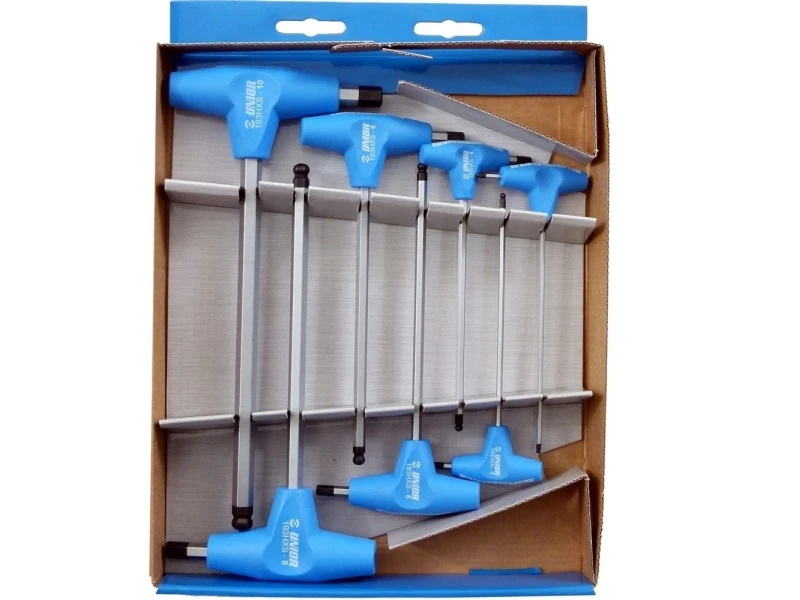 Denne praktiske unbrakonøglesæt er super nem at bruge og i et godt brugervenligt design. Det kommer med kugle i den ene ende, så det er nemmere at nå ind i besværlige kroge på cyklen, hvor der ellers ikke er plads. Den kraftige unbrakonøgle hjælper dig både til, at nå langt ind eller ved, at vende den få større moment.
