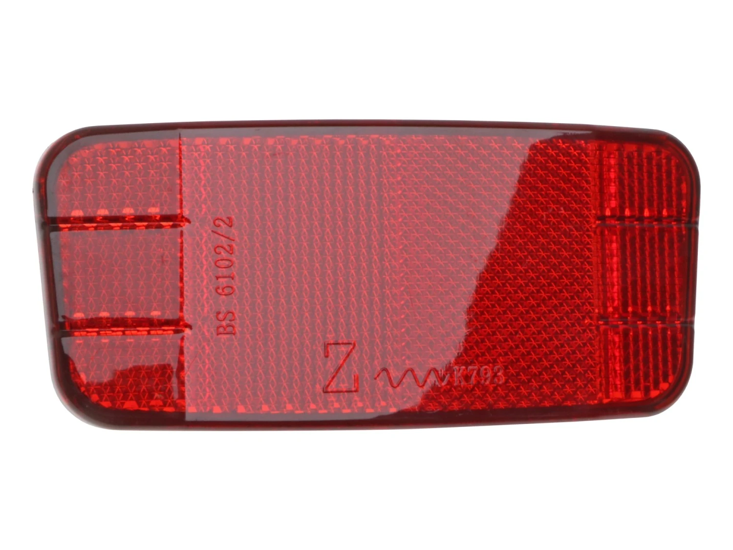 Stor rød refleks til montering på cyklen bagagebærer. Refleksen er CE-godkendt, og den er med til at sikre, at cyklen lever op til de gældende regler om cyklers udstyr. Der er møtrikker på bagsiden af refleksen, og den kan fastgøres i et beslag med en afstand på 50 mm mellem hullerne; møtrikker skal dog bestilles særskilt. Den røde refleks måler desuden 11×5 mm og giver god synlighed i trafikken.