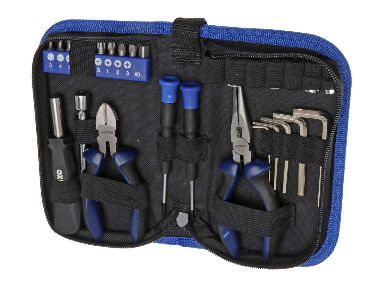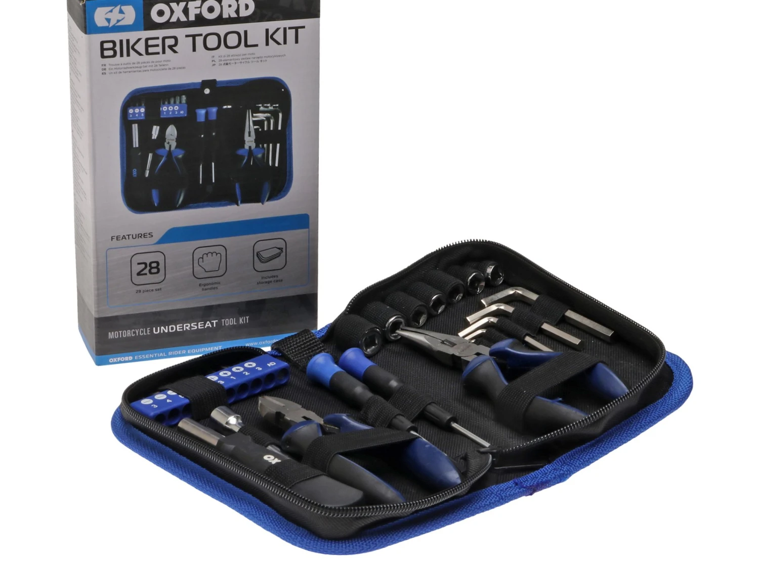 Værktøjssættet fra Oxford består af hele 28 dele og opbevares i det praktiske etui der lukkes med lynlås. Et oplagt sæt at have som fast inventar på maskinen.
