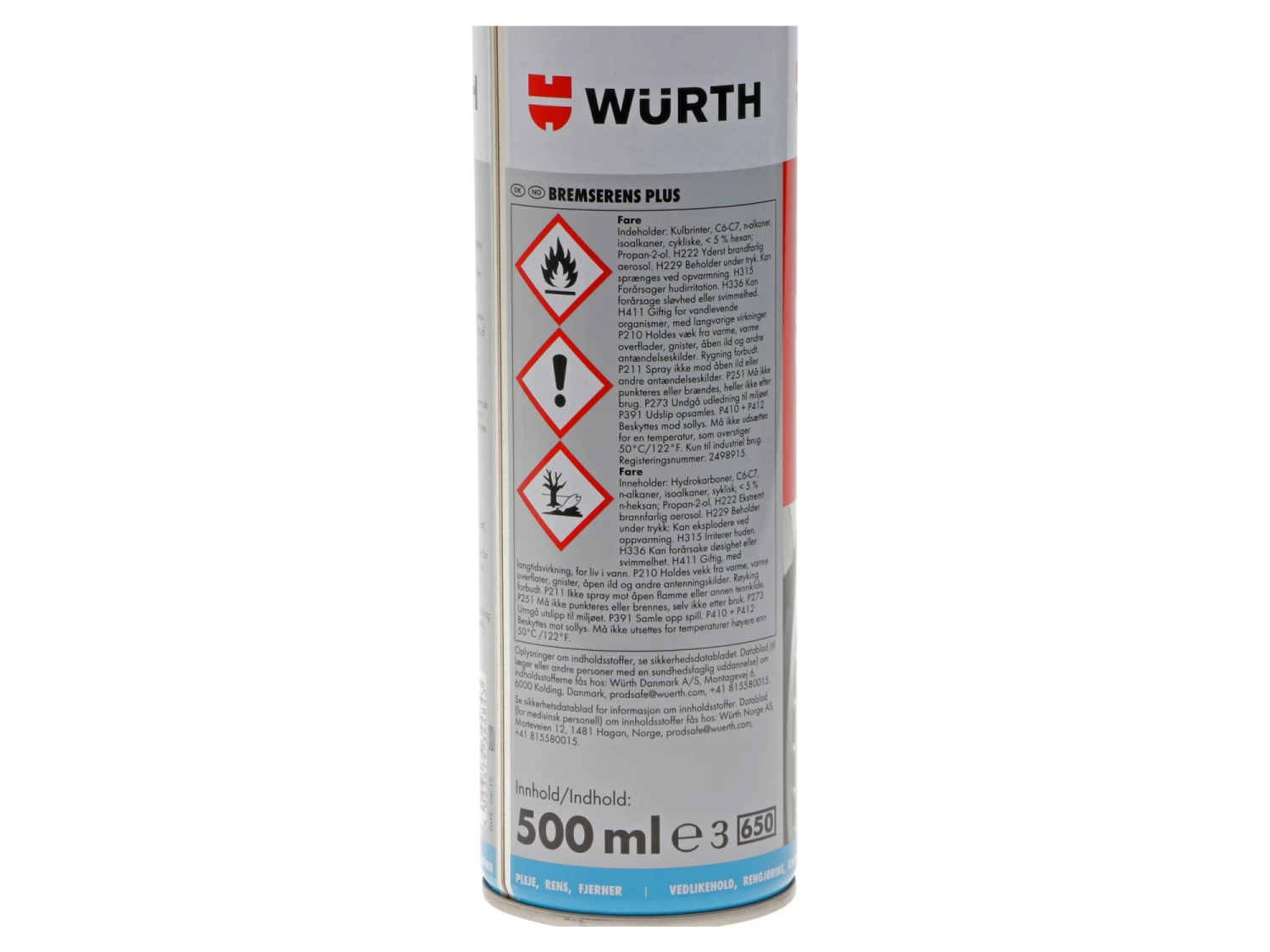 Würth bremserens kan bruges til mange formål når det kommer til drivelinjen, men også til at rengøre overflader inden maling eller montering af klistermærker. Dog skal man være opmærksom på at bremserens er et aggressivt rensemiddel og kan derfor skade sårbar lak.